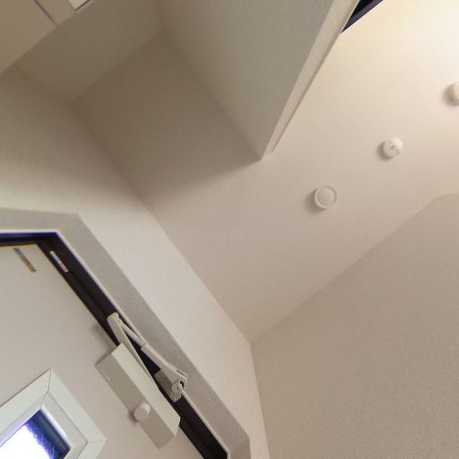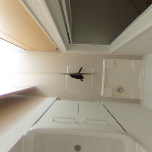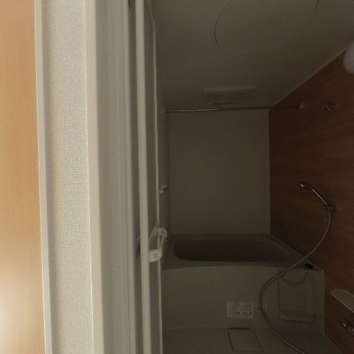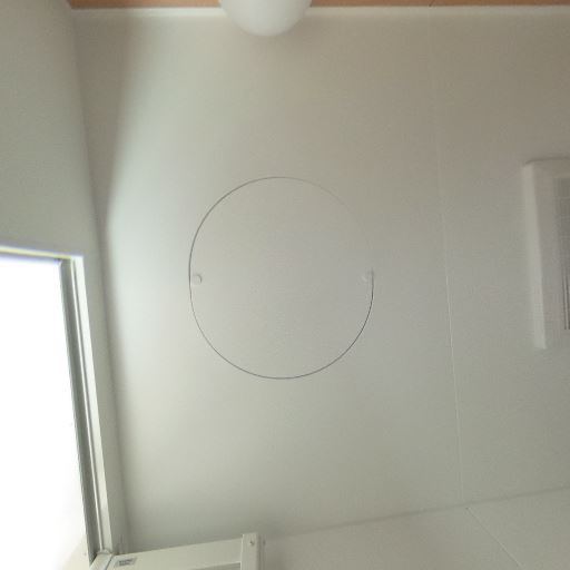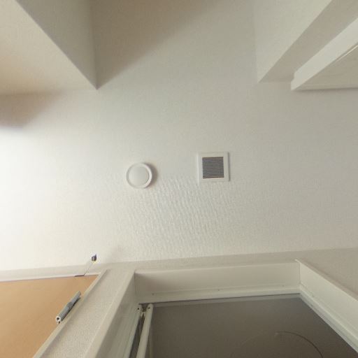 換気設備の存在(確度70%):脱衣所の天井に換気口と火災報知器らしき機器がある。