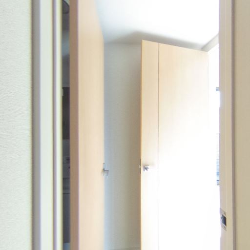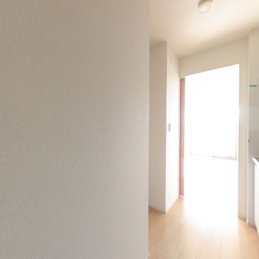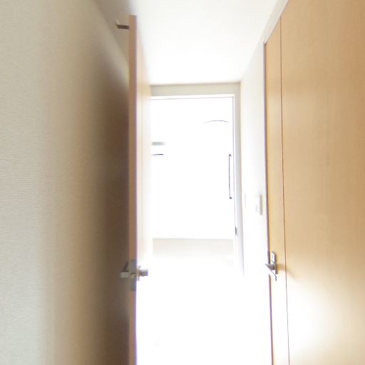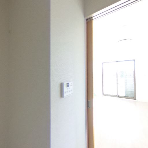 廊下側からの自然光(確度63%):洗面脱衣所の扉の先が明るく、外光が差し込んでいる。