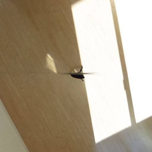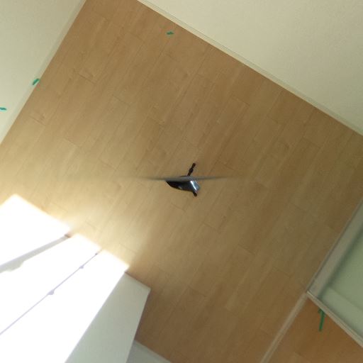 床の状態(確度70%):フローリングは目立つ傷や汚れは見当たらない。日差しで色味は明るい。