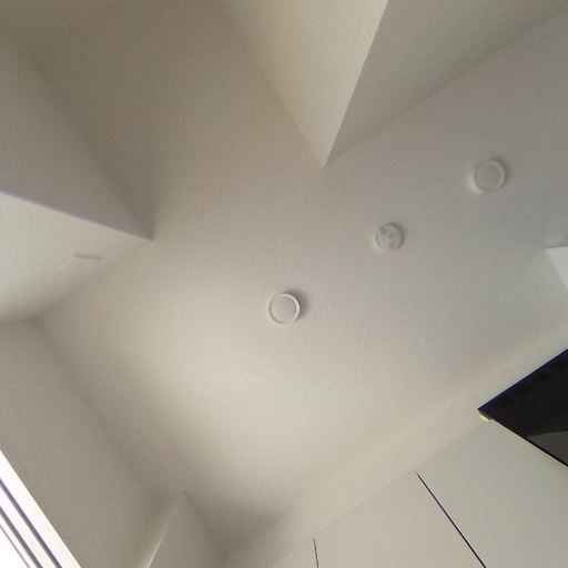 天井設備と換気口(確度65%):天井に複数のダウンライト/点検口・換気口があり、照明や換気の機能が整っている。