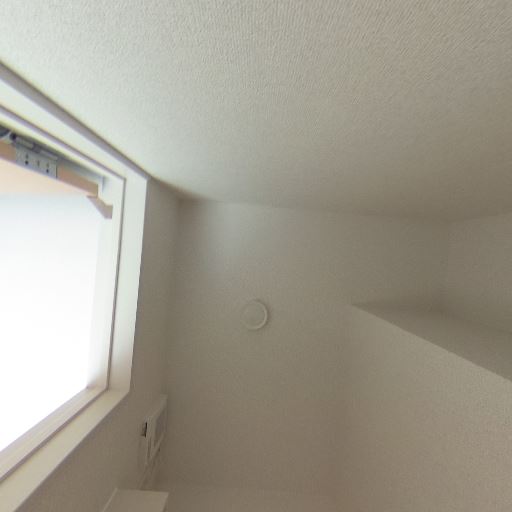 換気設備と小窓あり(確度86%):天井に換気口があり、壁上部に採光・通気用の窓がある。