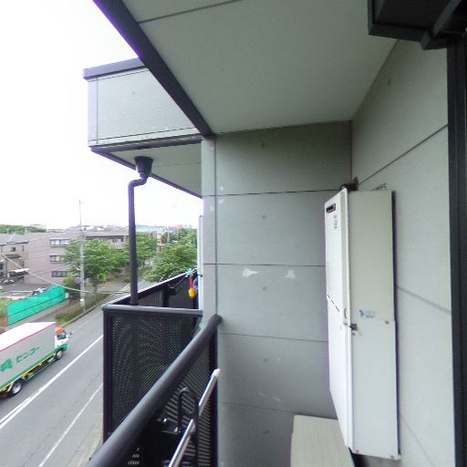 外壁・手すりの使用感(確度62%):外壁パネルや手すりに小キズや汚れが点在。築年数相応の使用感がある。