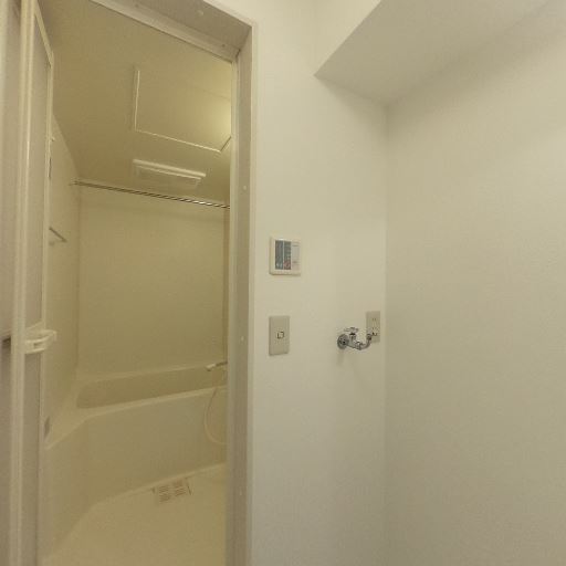 サニタリーと浴室が近接したレイアウト(確度86%):洗面台・洗濯機置き場・浴室が同一スペース内にまとまっている。動線が短く日常使いで便利そう。