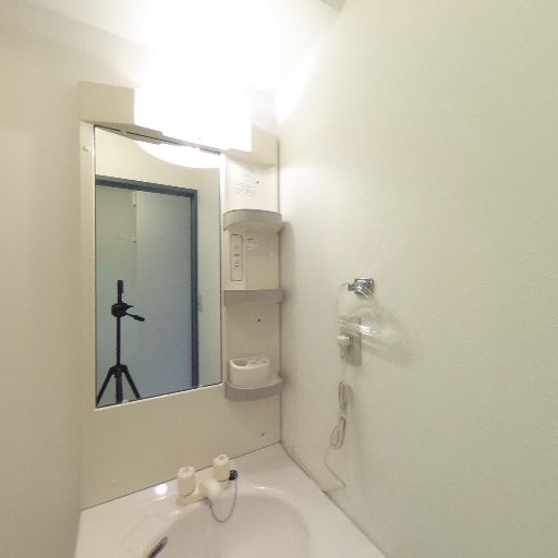 独立洗面台あり(確度83%):照明付きミラーと収納棚がある独立洗面台が確認できる。