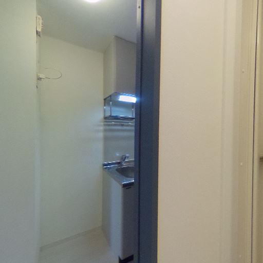 キッチンはコンパクト(確度74%):シングルシンクと小さめの調理スペースのキッチンが見える。単身者向けのサイズ感。