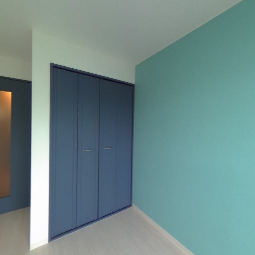 収納の充実(確度78%):観音開きのクローゼットが壁一面に設置されている。