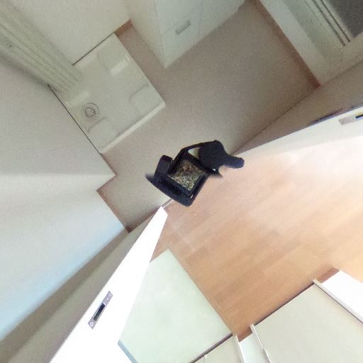 床のコンディション(確度70%):フローリングは大きな傷や汚れは見当たらないが、中央に作業用の椅子が置かれている。