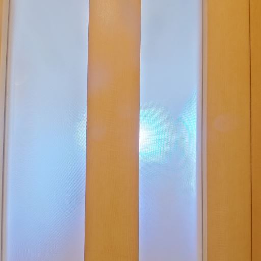 室内ドアの採光スリット(確度86%):室内側のドアには縦長の半透明スリットが複数あり、廊下側にも光を通す。