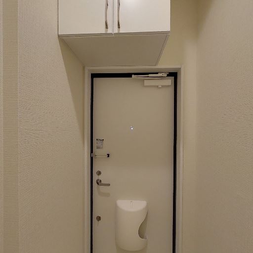 スイッチ位置(確度69%):壁面に照明スイッチが設置されており、玄関入って手の届く位置にあると推測。