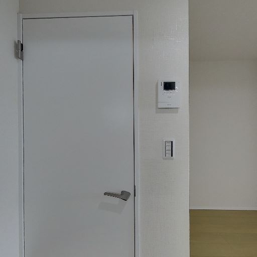 モニタ付きインターホン等の設備(確度78%):壁にインターホンおよびスイッチ類が設置されている。