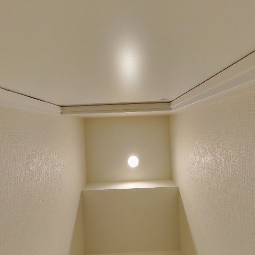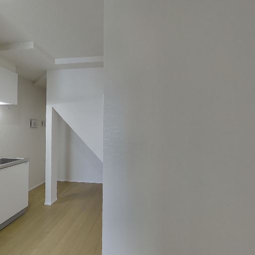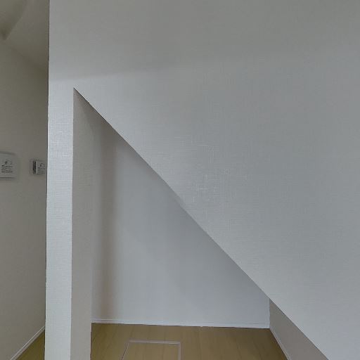 階段下スペースの活用可能性(確度64%):右画像奥に斜め天井のくぼみがあり、階段下スペースのように見える。