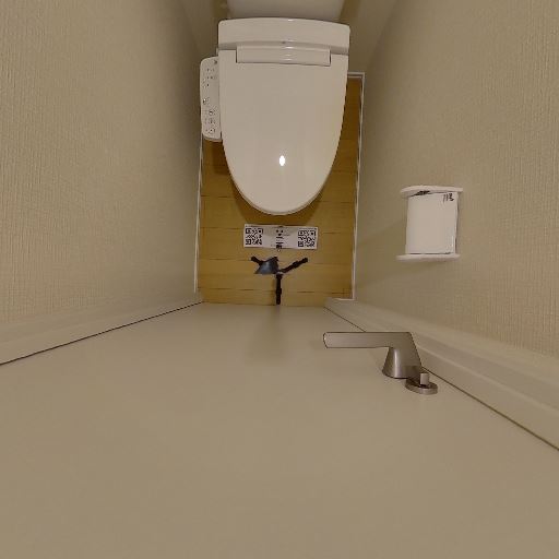 温水洗浄便座付き(確度82%):便座右側に操作部が見え、温水洗浄機能が付いていると推測できる。