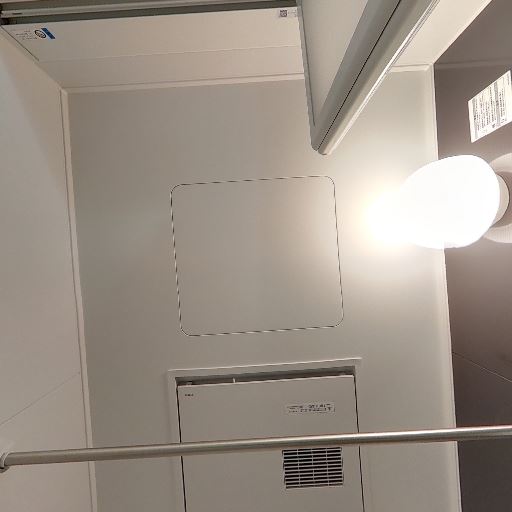 浴室内に物干しバーあり(確度86%):天井近くにバーが1本通っており、浴室乾燥や室内干しに使える。