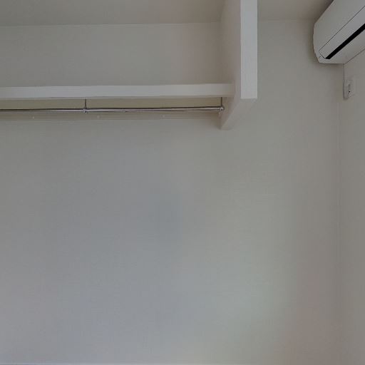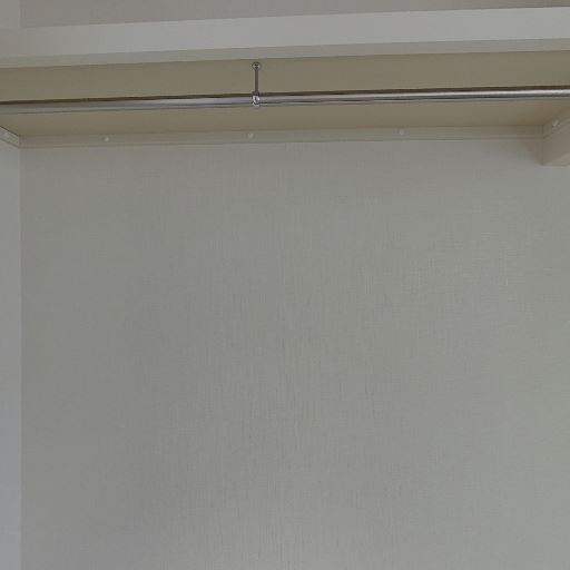 収納・ハンガーパイプあり(確度67%):壁面に棚板とハンガーパイプが備え付けられている。