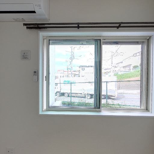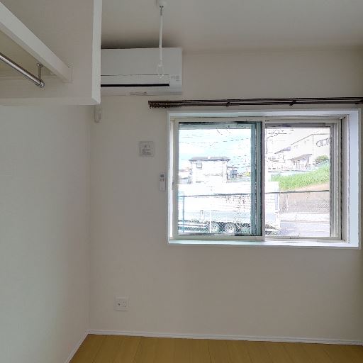 エアコン設置済み(確度92%):窓上部に壁掛けエアコンが確認できる。