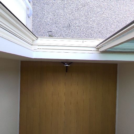 採光と通気が期待できる窓(確度80%):腰高の引き違い窓があり、外の景色が見える。窓枠もしっかりしており、室内は明るめ。