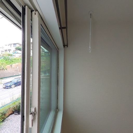 室内物干しフック(ピン)がある可能性(確度62%):壁面にフック金具のようなものが見える。タオル掛けや物干し受けとして使えるかもしれない。