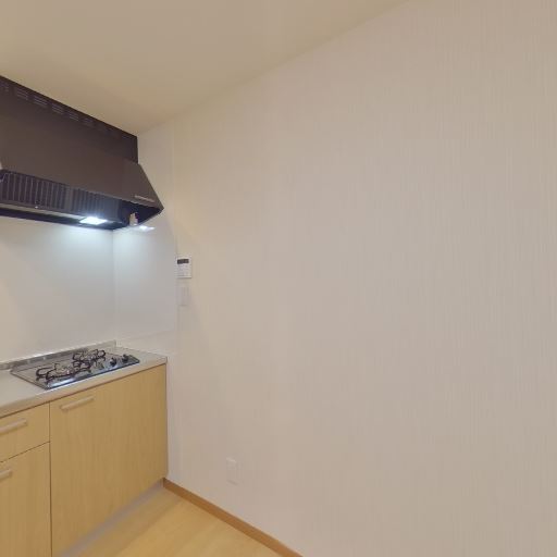 キッチン設備が新しめ(確度86%):2口ガスコンロとレンジフード、ステンレスシンクが設置されており、面材も劣化が少なく見える。