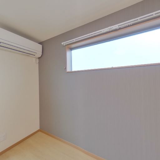 室内エアコンあり(確度90%):壁上部にエアコン本体が確認できる。