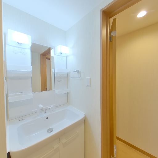 換気・照明が十分(確度78%):天井にダウンライトと換気口があり、脱衣所として明るく換気も期待できる。