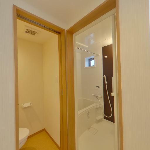 独立トイレと浴室が隣接(確度86%):左がトイレ、右が浴室で、脱衣所からそれぞれにアクセスできるレイアウト。