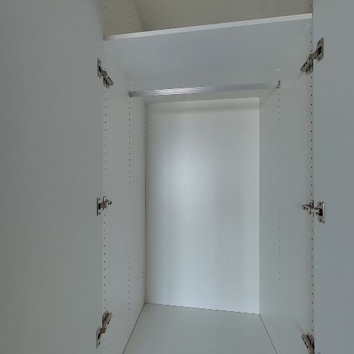 • クローゼットあり(上棚・ハンガーパイプ付き)(確度86%):両開き扉の収納で、上部に棚とハンガーパイプが設置されている。奥行きは標準的で衣類収納に適している。