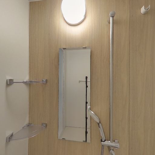• 収納・小物置きの充実(確度78%):シャワー横に棚が複数あり、シャンプーやボディソープを置けるスペースが確保されている。