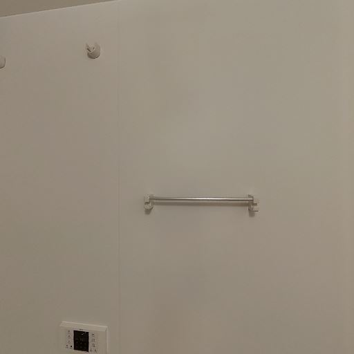 • タオルバーと小物用ニッチ(確度70%):洗面台横の壁にタオルバーがあり、壁面にスイッチやニッチ状のスペースもある。