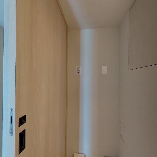 • 収納の有無(確度83%):壁面に縦長のクローゼット扉が確認できる。