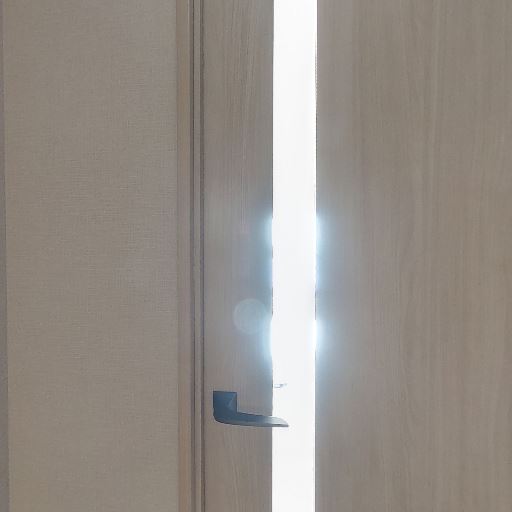 • 明るい廊下と奥の採光(確度76%):廊下の奥側が強く明るく、扉の隙間からも自然光が差し込んでいる。