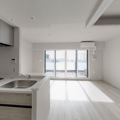 • 採光と眺望(確度74%):キッチン奥に大きめの開口部があり、室内が明るく感じられる。バルコニー方向に視線が抜けている。