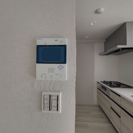 • 空調・インターホン等の設備(確度78%):リビングにエアコンが設置済みで、壁面にモニター付きインターホンも確認できる。