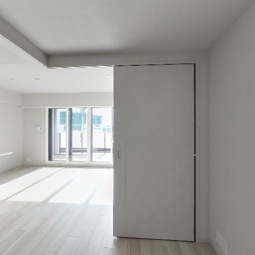 • 採光と視界の抜け(確度73%):奥の居室側に大きめの窓が見え、室内に自然光が届いている。床面の明るさから日中は十分に明るいと推測される。