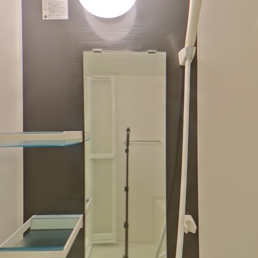 • タオル掛け・スイッチ類の位置(確度70%):タオルバーと操作パネルが洗面横の壁に設置されている。