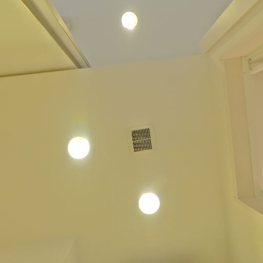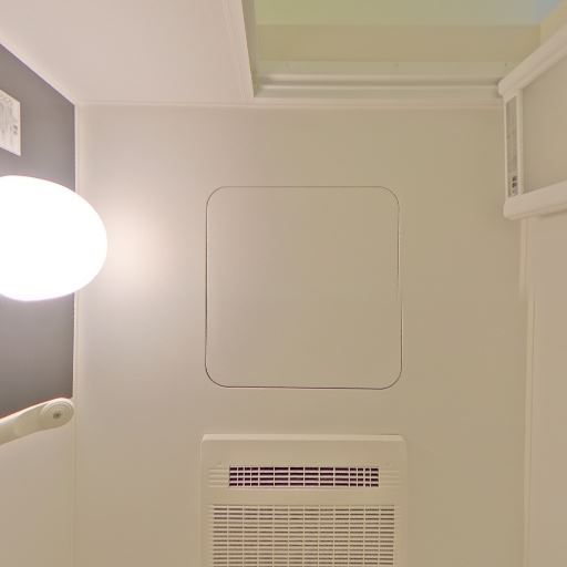 • 換気・照明(確度83%):天井にダウンライトが2灯と換気口があり、明るさと換気が確保されている。
