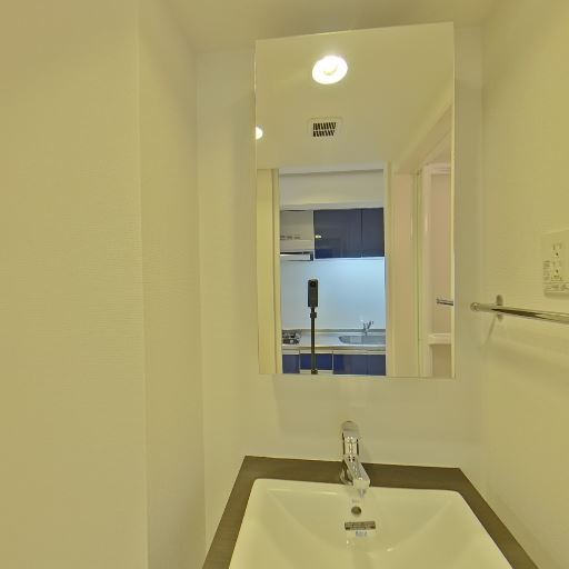 • 洗濯機置き場あり(確度86%):洗面台横に洗濯機パンと蛇口が確認できる。
