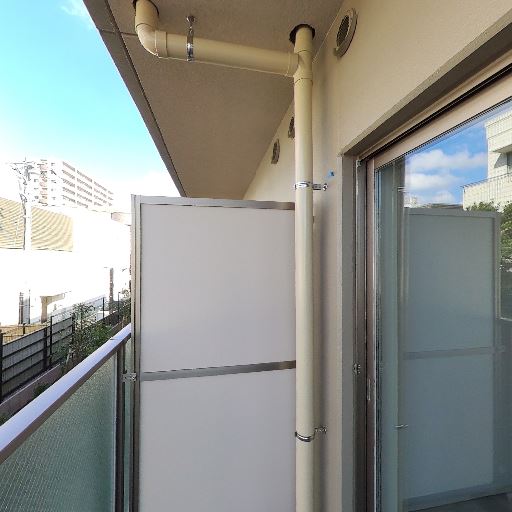 • プライバシーへの配慮(確度74%):手すりのガラスは不透明タイプで視線をある程度遮る。隣戸との仕切り板もあり。