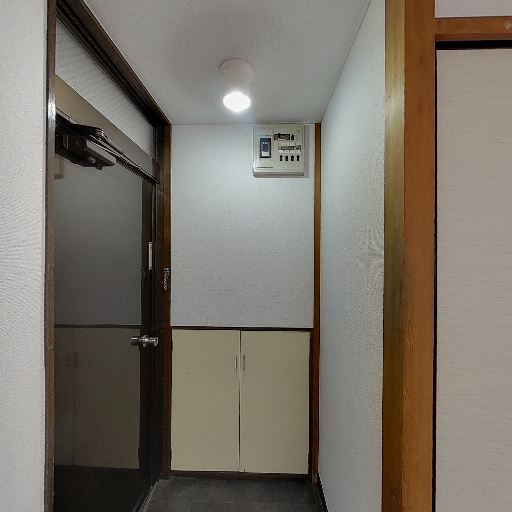 玄関まわりはコンパクトで収納あり(確度78%):玄関正面に小型収納と分電盤があり、土間はタイルで汚れに強そう。