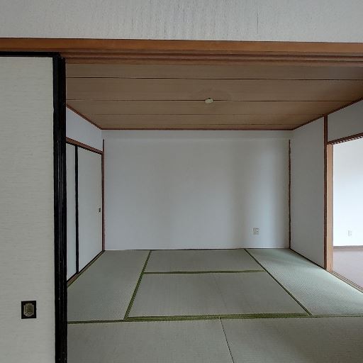 和室スペースが隣接(確度74%):引き戸の向こうに畳の和室が続いている。
