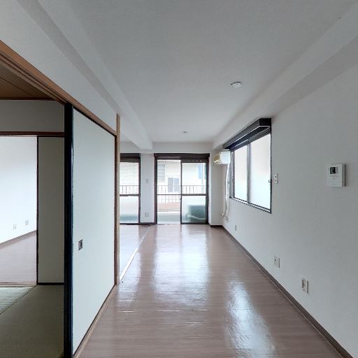 LDKと和室の続き間(確度86%):フローリングの居室と畳の和室が引き戸でつながる間取り。開放すると奥行きが出る。