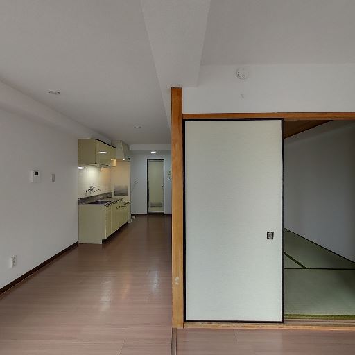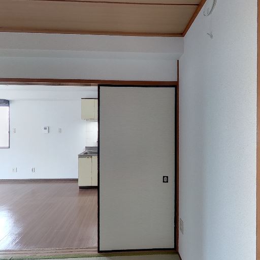 隣室(フローリングのLDK)と続き間(確度86%):ふすまを開けるとフローリングとキッチンが見える続き間で、空間を広く使える。