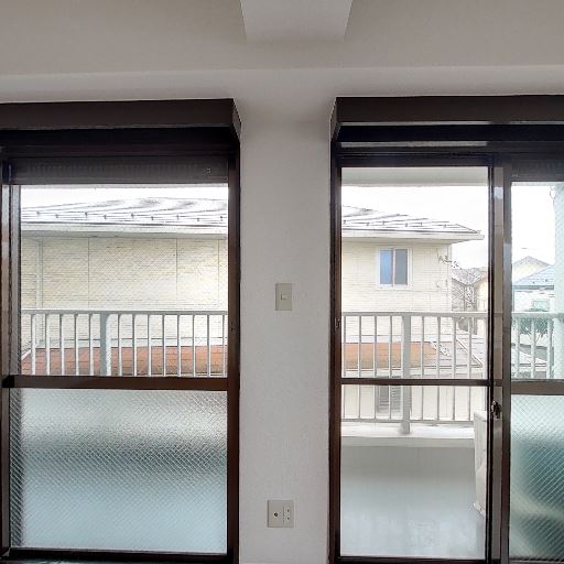 窓は網入りガラスで防火・防犯面に配慮(確度83%):格子状ワイヤーの入ったガラスが確認できる。