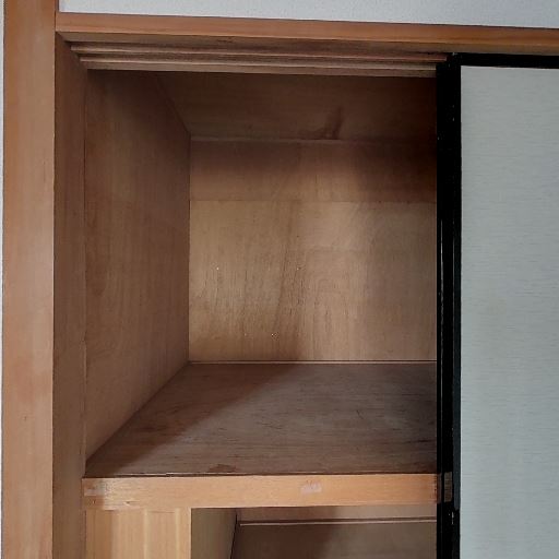 和室+押入れあり(確度88%):畳敷きの和室で、ふすまの押入れ収納が確認できる。上段・下段に分かれた一般的な造り。