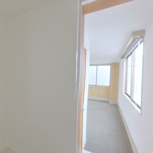 動線の取りやすさ(確度64%):細長い廊下から居室へ抜けるシンプルな動線。扉の開閉スペースも確保されている。