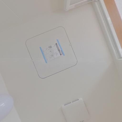 換気・点検口の存在(確度86%):天井に換気口と点検口が確認でき、メンテナンス性と換気に配慮されている。
