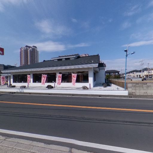 • 周辺の商業施設の近さ(確度80%):道路向かいに飲食店と思われる建物や旗、看板が多数見える。