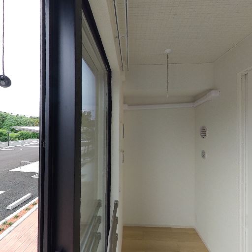 • インナーバルコニー/サンルーム風のスペース(確度86%):窓内側に屋根付きの細長いスペースがあり、物干し竿受けや換気口が見える。