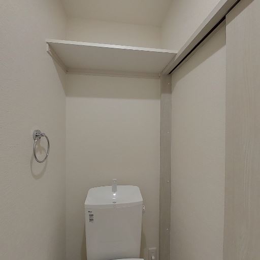 • 個室トイレで収納棚あり(確度86%):タンク上部に奥行きのあるオープン棚が1枚設置されており、トイレットペーパーや掃除用品の収納に使える。