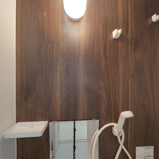 • 浴室の様子(確度74%):隣接する浴室が見え、木目調のパネルと手元鏡、シャワーが新しめ。