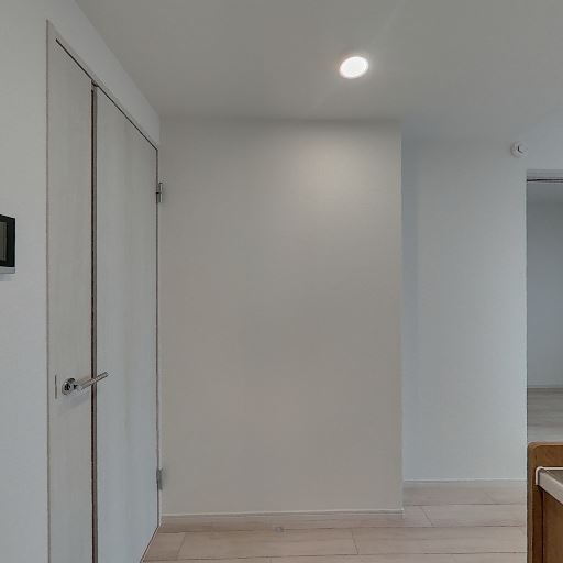 • 玄関の明るさと照明(確度73%):天井にダウンライトがあり、白基調の内装で全体が明るく見える。自然光は少なそうだが人工照明で十分に補えている。